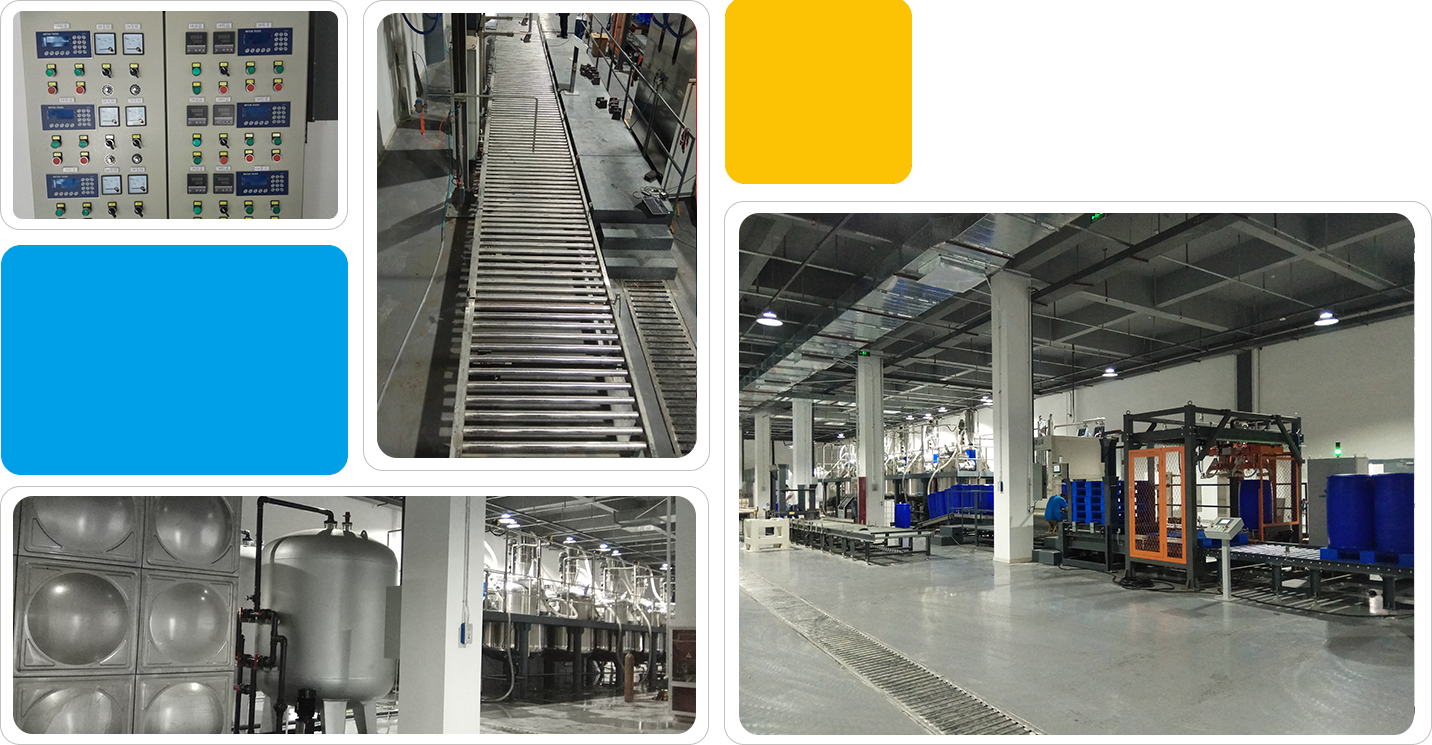 上海388vip太阳集团为北京某客户量身定制的水性灭火剂生产线,该生产线为国内首条该领域的大产能生产线,包括水处理系统、粉体上料系统、搅拌混合系统、自动包装系统、电气自动化控制系统。