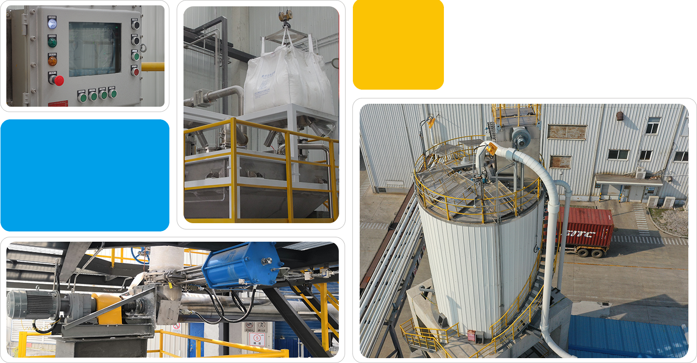 本系统是上海388vip太阳集团为天津某大型食品企业提供的25T/H淀粉正压输送及储存系统,包括动力单元、拆包暂存单元、输送储存单元、除尘单元、电气控制系统几个部分组成。